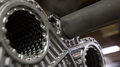 To ensure you’re keeping your plate heat exchanger properly maintained, you should keep basic records. Those should include the make and model number, what kind of maintenance you’ve already performed and when you performed it, available spare parts in your inventory, and the number of plates and gaskets in the unit. You should also know the dimensions of the plate pack as specified by the manufacturer (PHEs aren’t tightened to a torque specification, but rather to the width of the plate pack) so you can periodically check it for tightness and return it to its original state after scheduled maintenance. When you tighten the PHE, it’s also a good time to lubricate the carrying and guide bars to make opening the PHE easier next time.